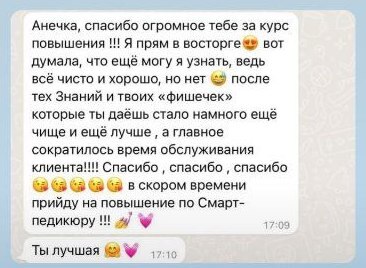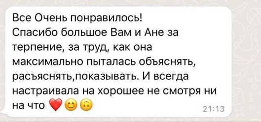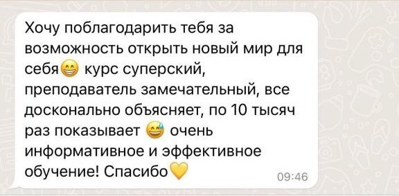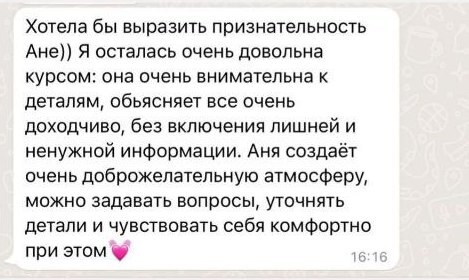 - полная поддержка и обратная связь (со всеми ученицами я всегда на связи и даю мощную поддержку)